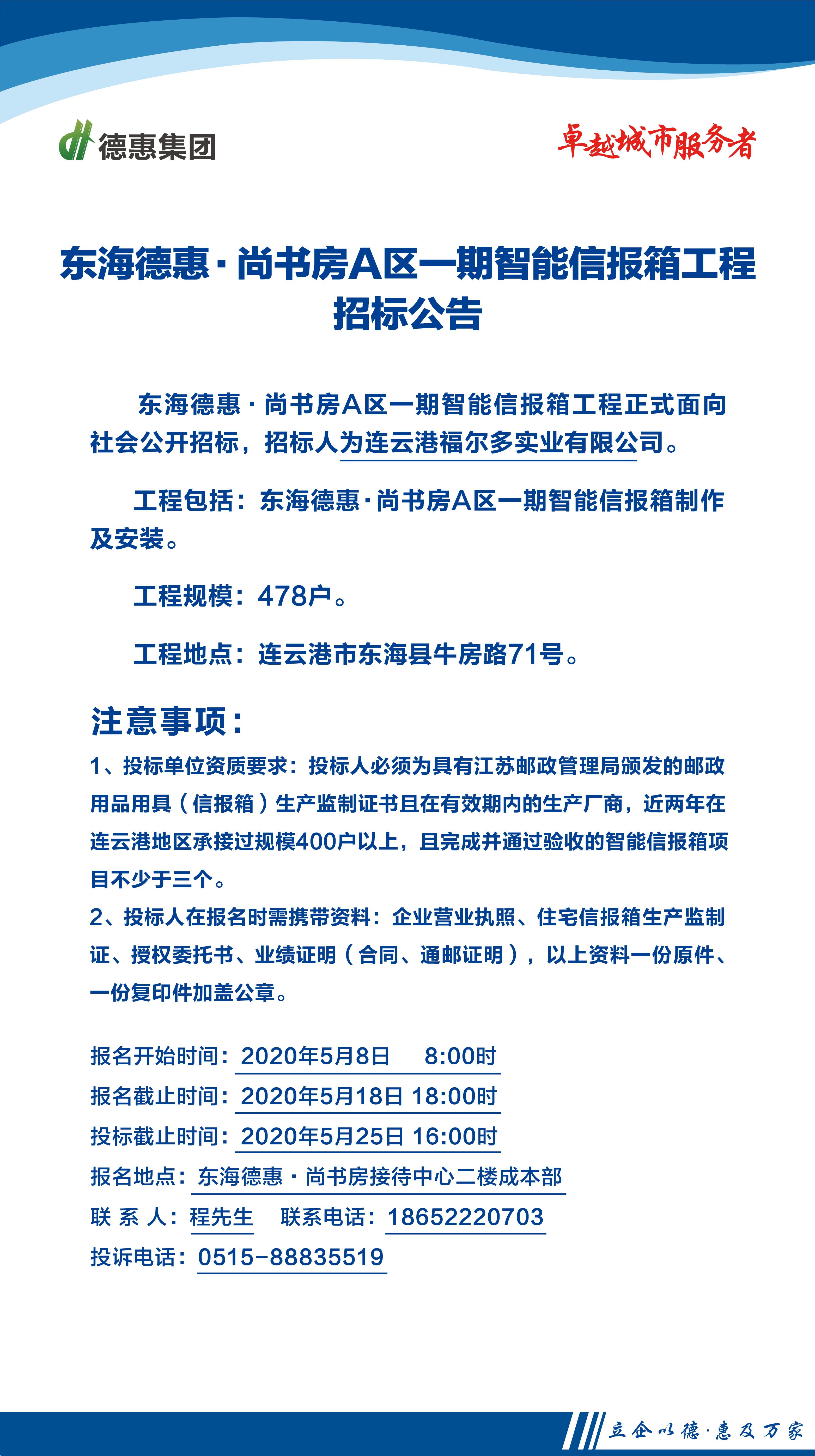 東海德惠尚書房A區(qū)一期智能信報箱工程招標公告