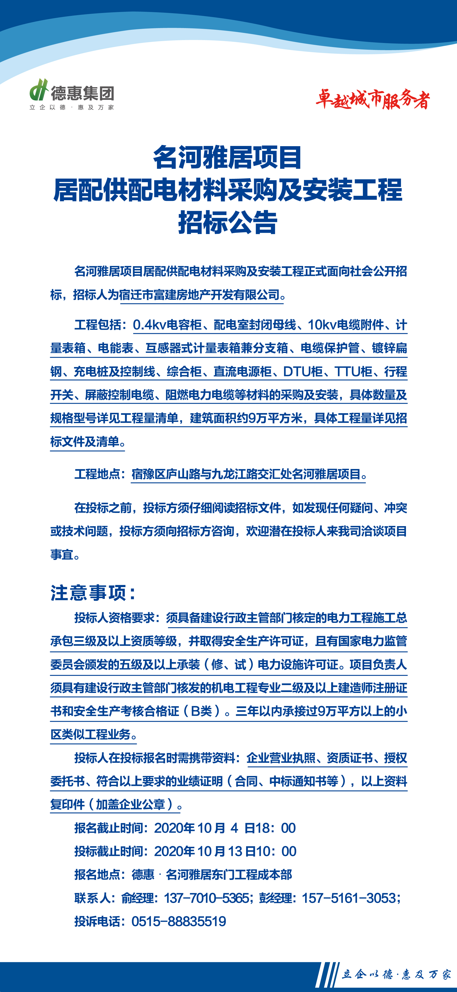 名河雅居供配電材料采購(gòu)及安裝工程招標(biāo)公告