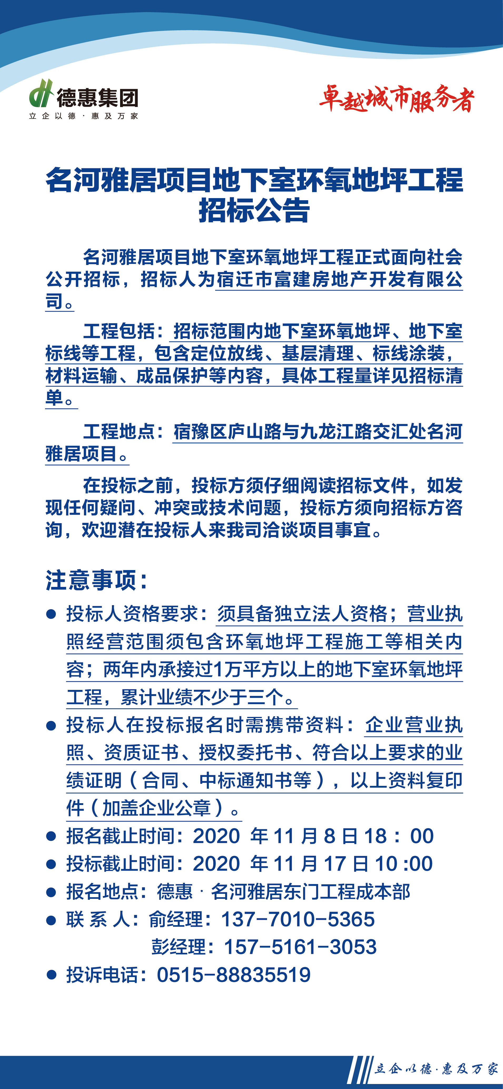 名河雅居項目地下室環(huán)氧地坪工程招標公告