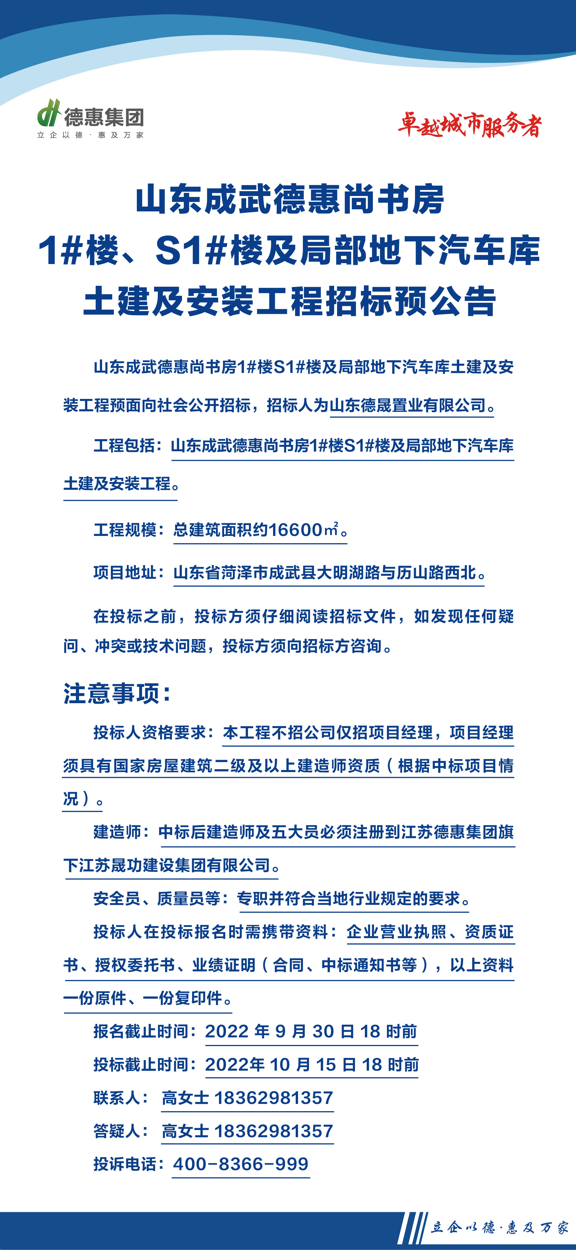 山東成武德惠尚書房1#、S1#樓及局部地庫土建及安裝工程