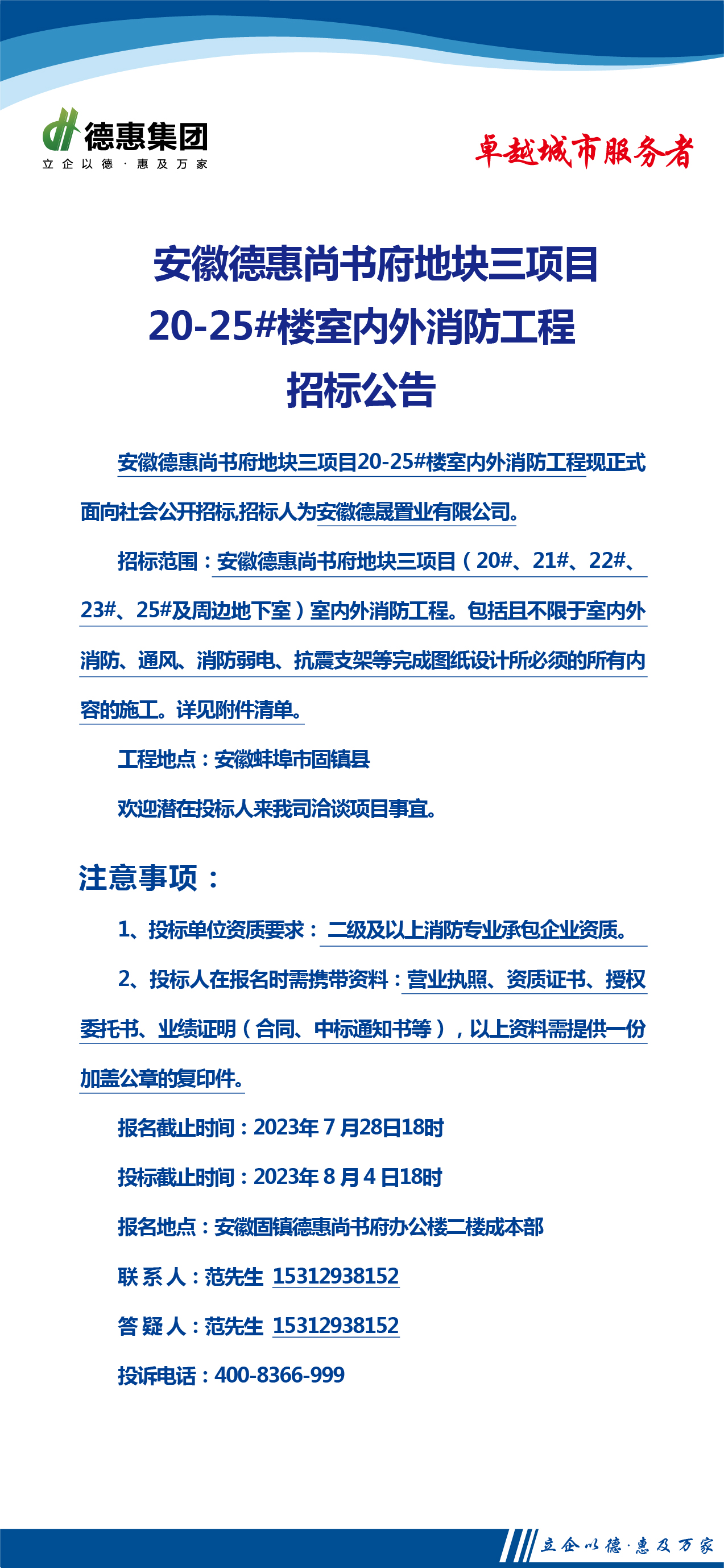 安徽固鎮(zhèn)德惠·尚書府地塊三(20-25#樓區(qū)域)室內(nèi)及室外消防工程