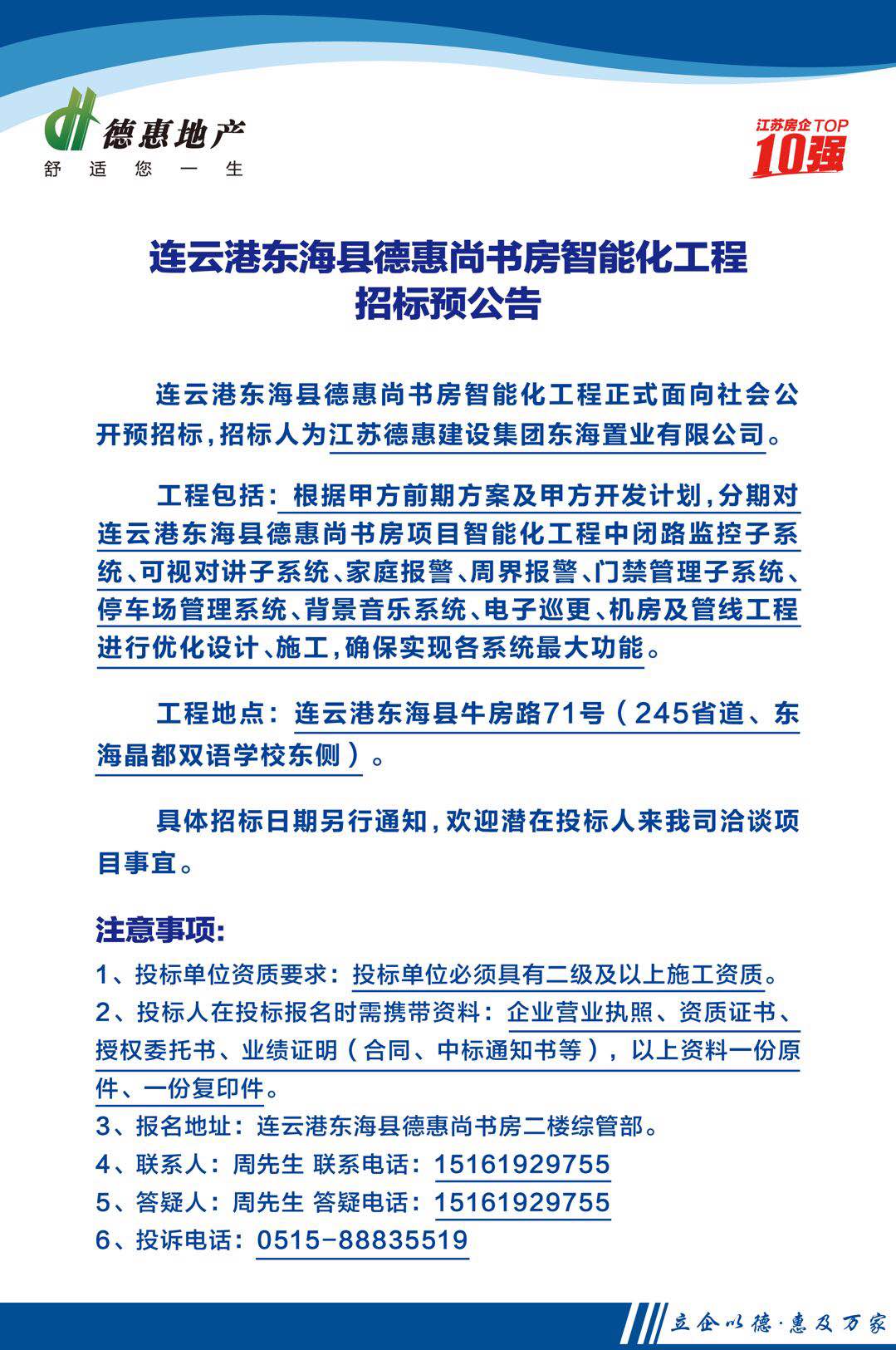 連云港東??h德惠尚書房智能化工程招標(biāo)預(yù)公告