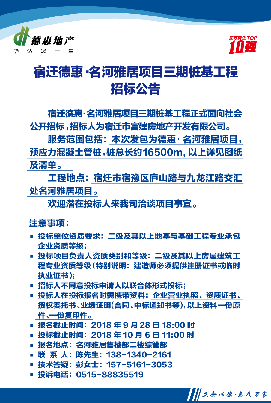 宿遷德惠·名河雅居項(xiàng)目三期樁基工程招標(biāo)公告