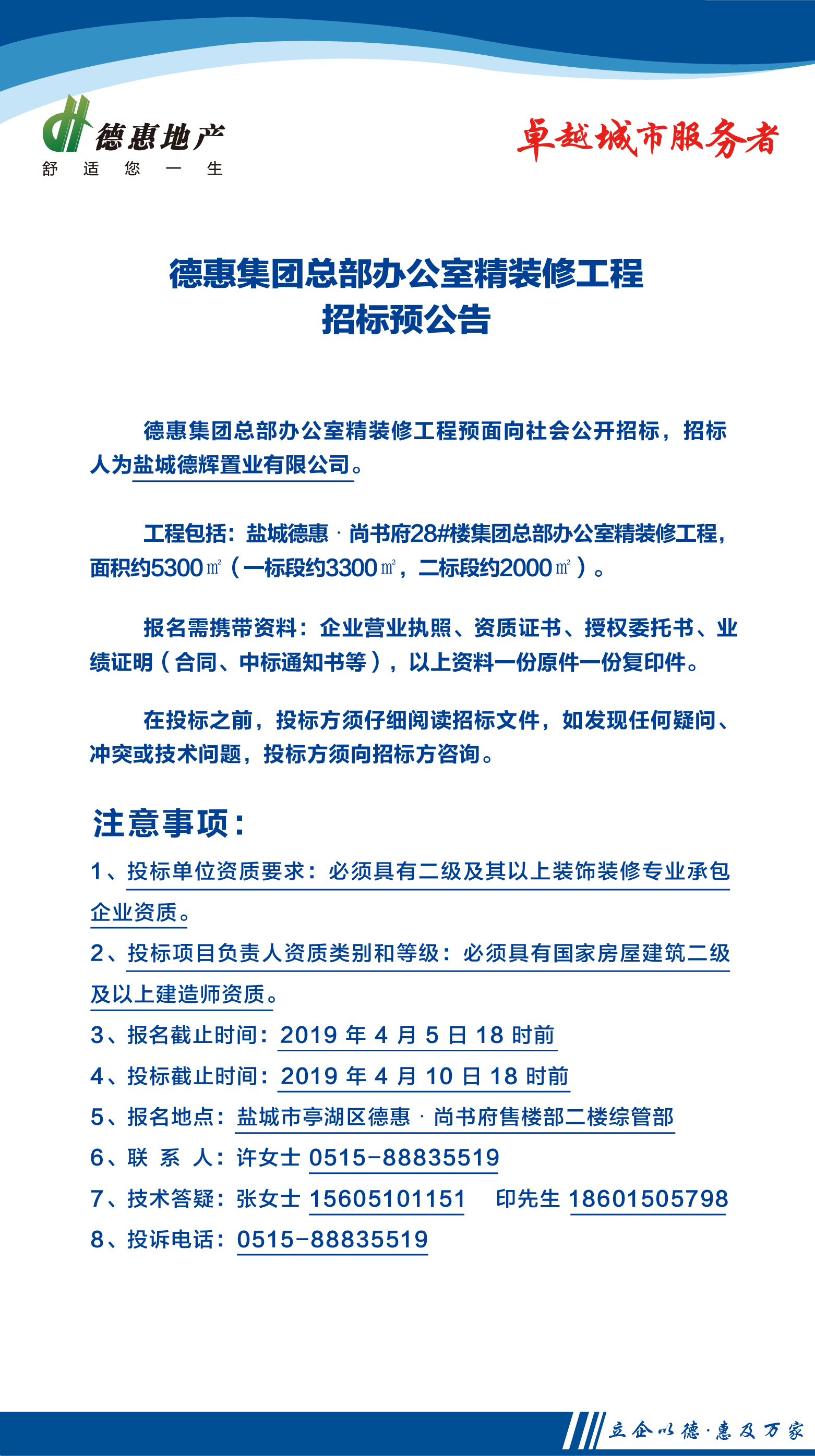 德惠集團(tuán)總部辦公室精裝修工程招標(biāo)預(yù)公告