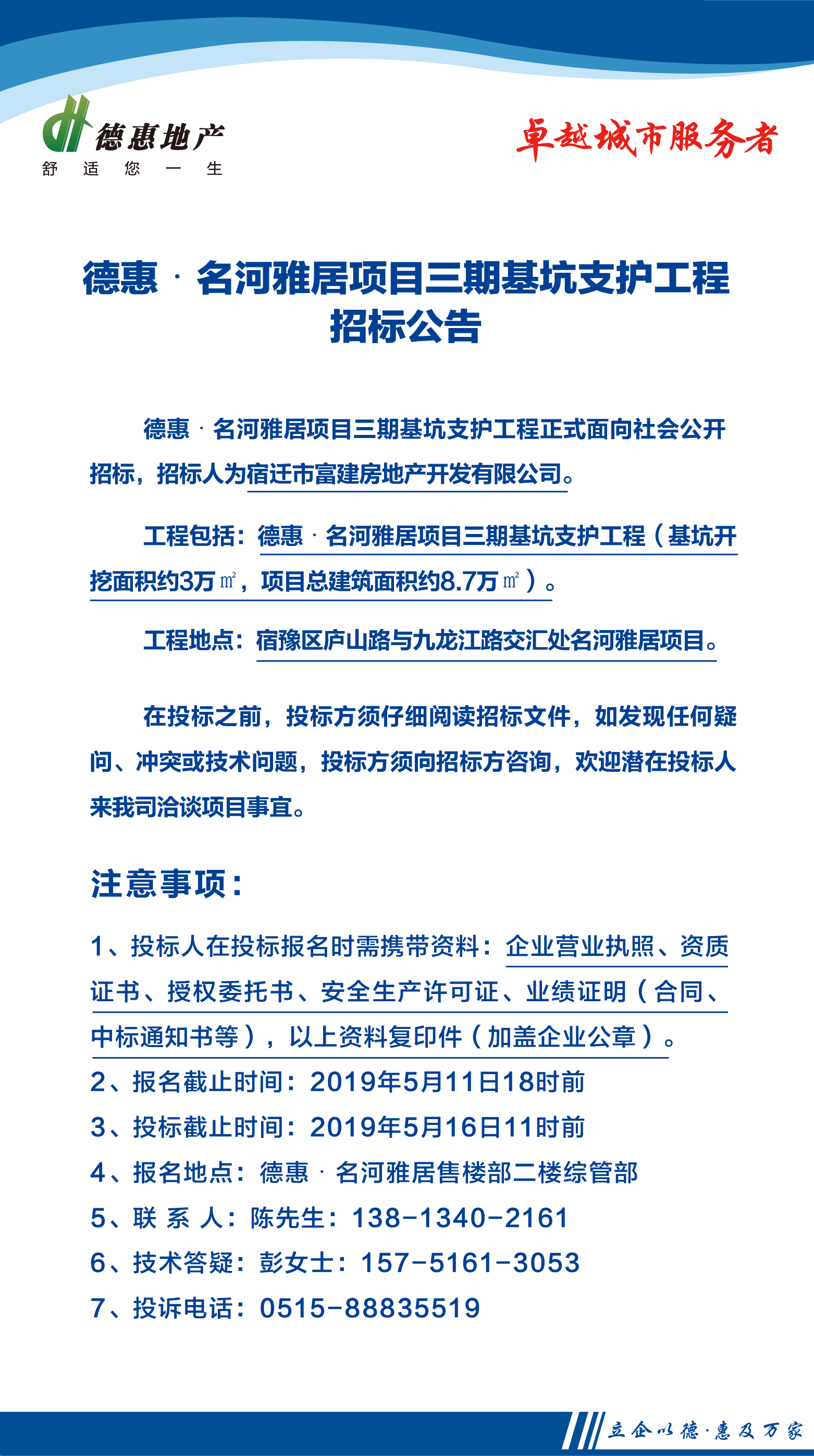 德惠·名河雅居項目三期基坑支護工程招標公告