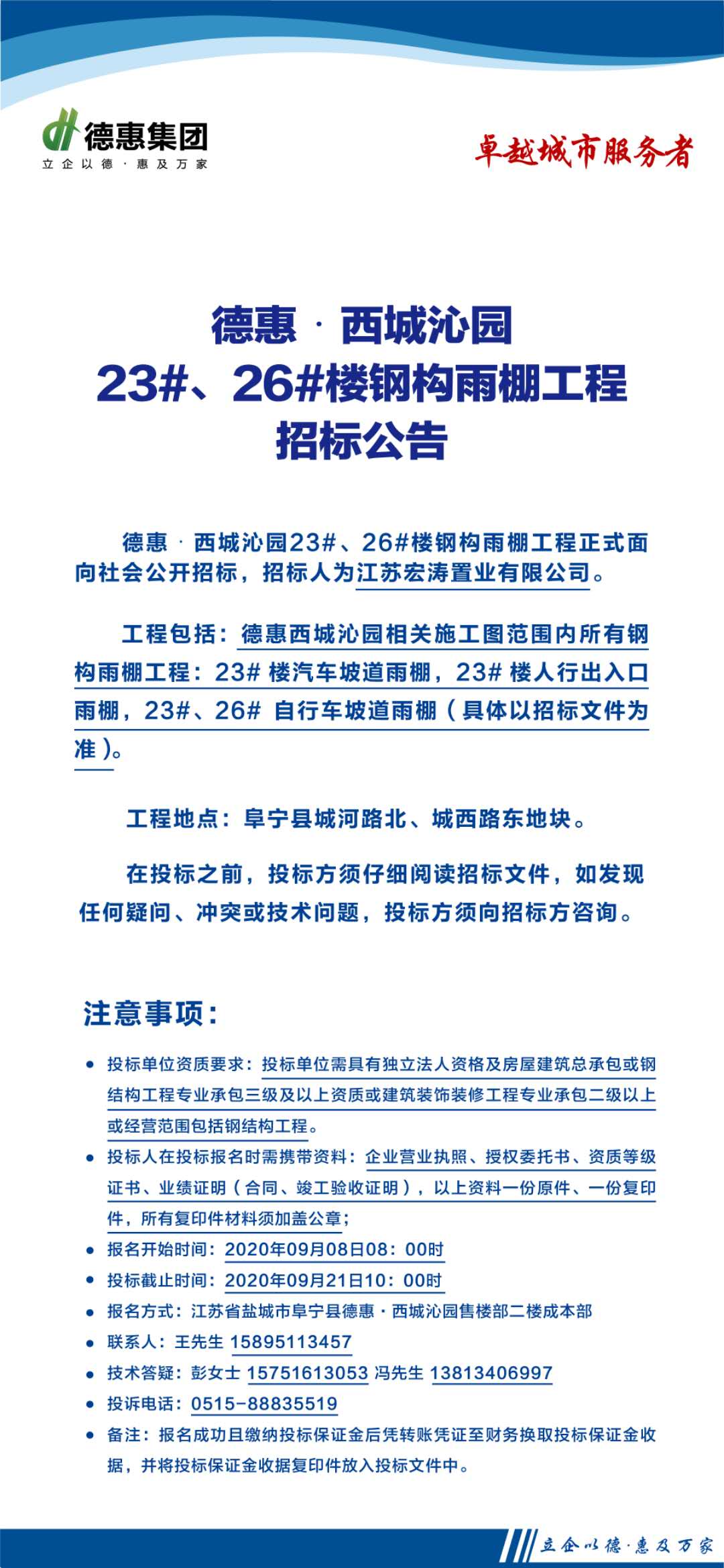 德惠西城沁園23#、26#樓鋼構(gòu)雨棚工程招標(biāo)公告
