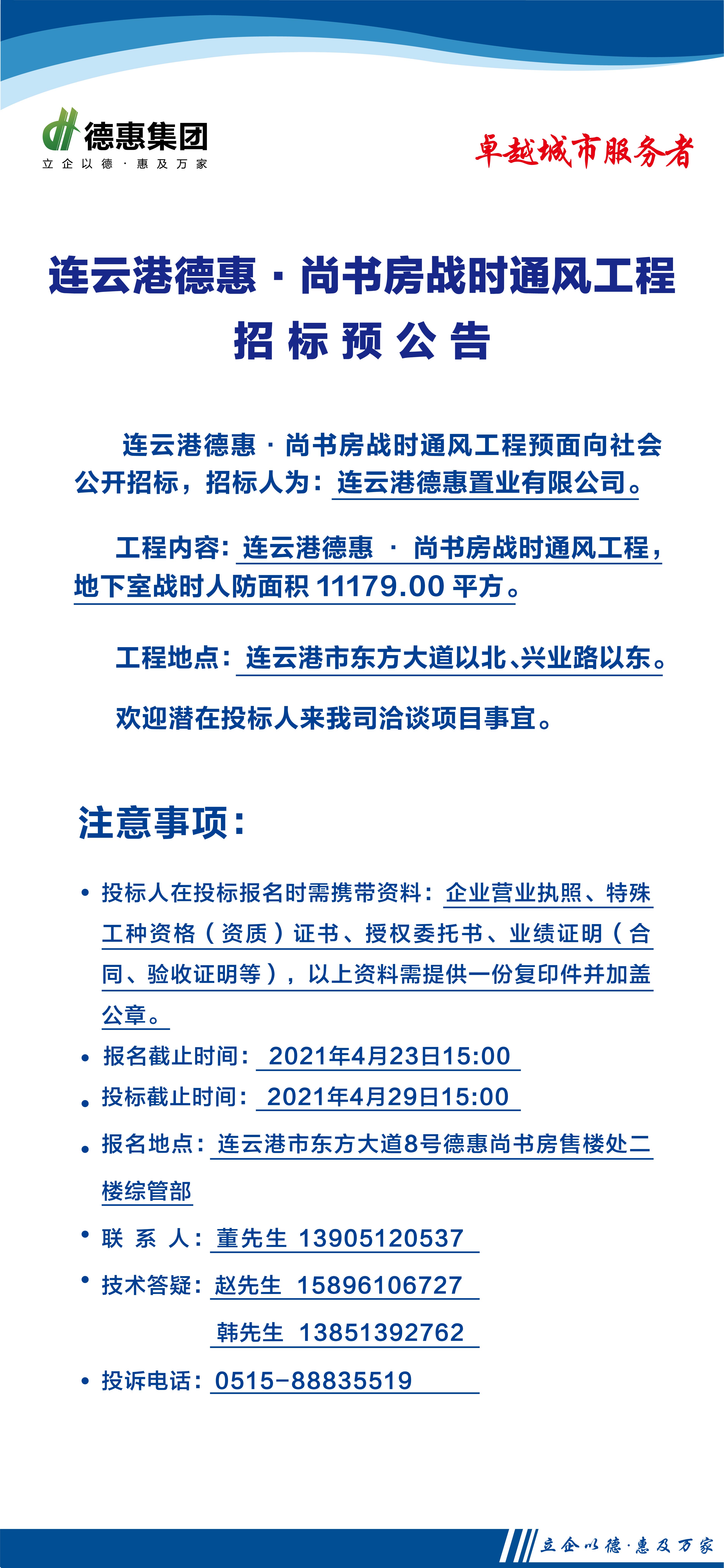 連云港德惠·尚書房戰(zhàn)時(shí)通風(fēng)工程招標(biāo)預(yù)公告