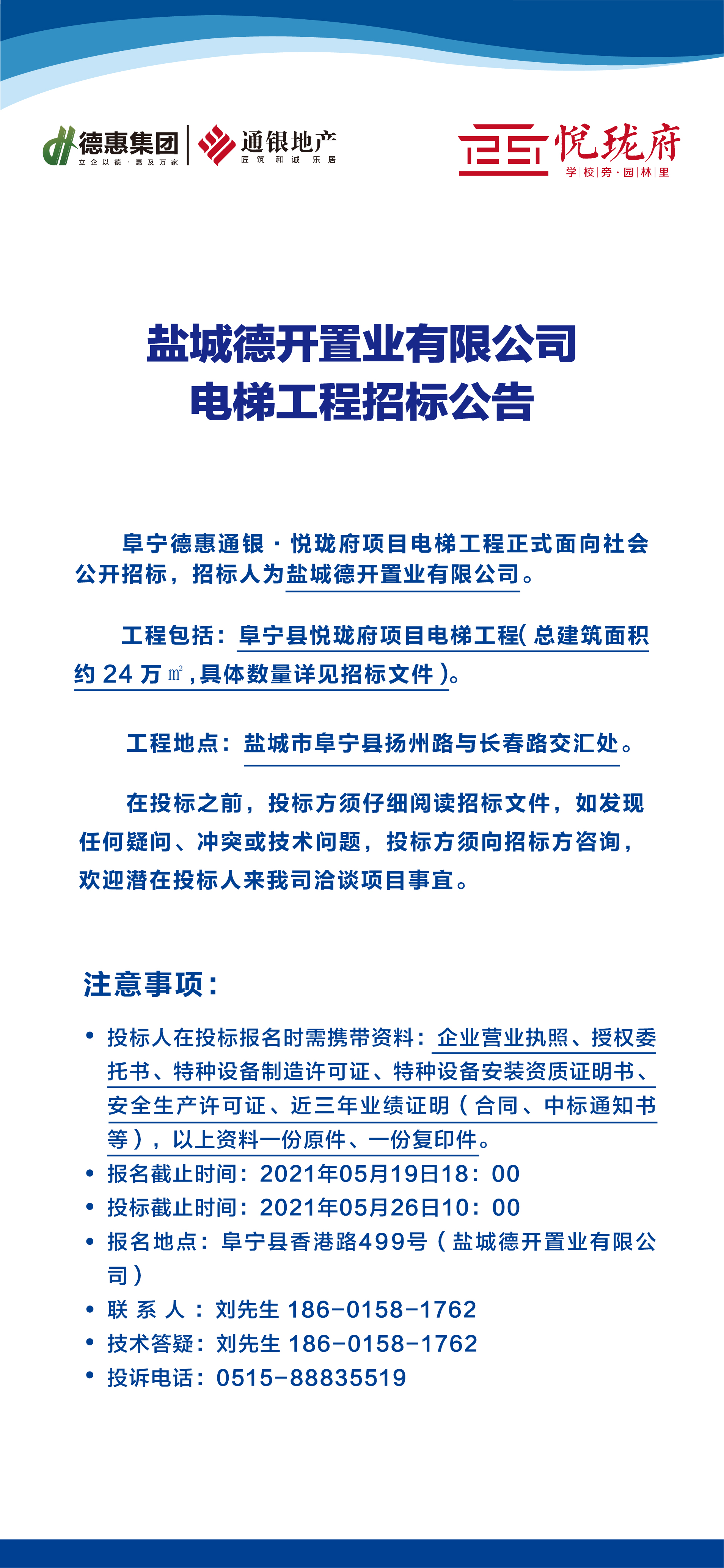 阜寧悅瓏府電梯工程招標公告