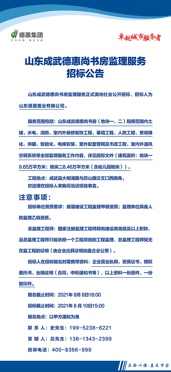 山東成武德惠尚書(shū)房監(jiān)理服務(wù)招標(biāo)公告