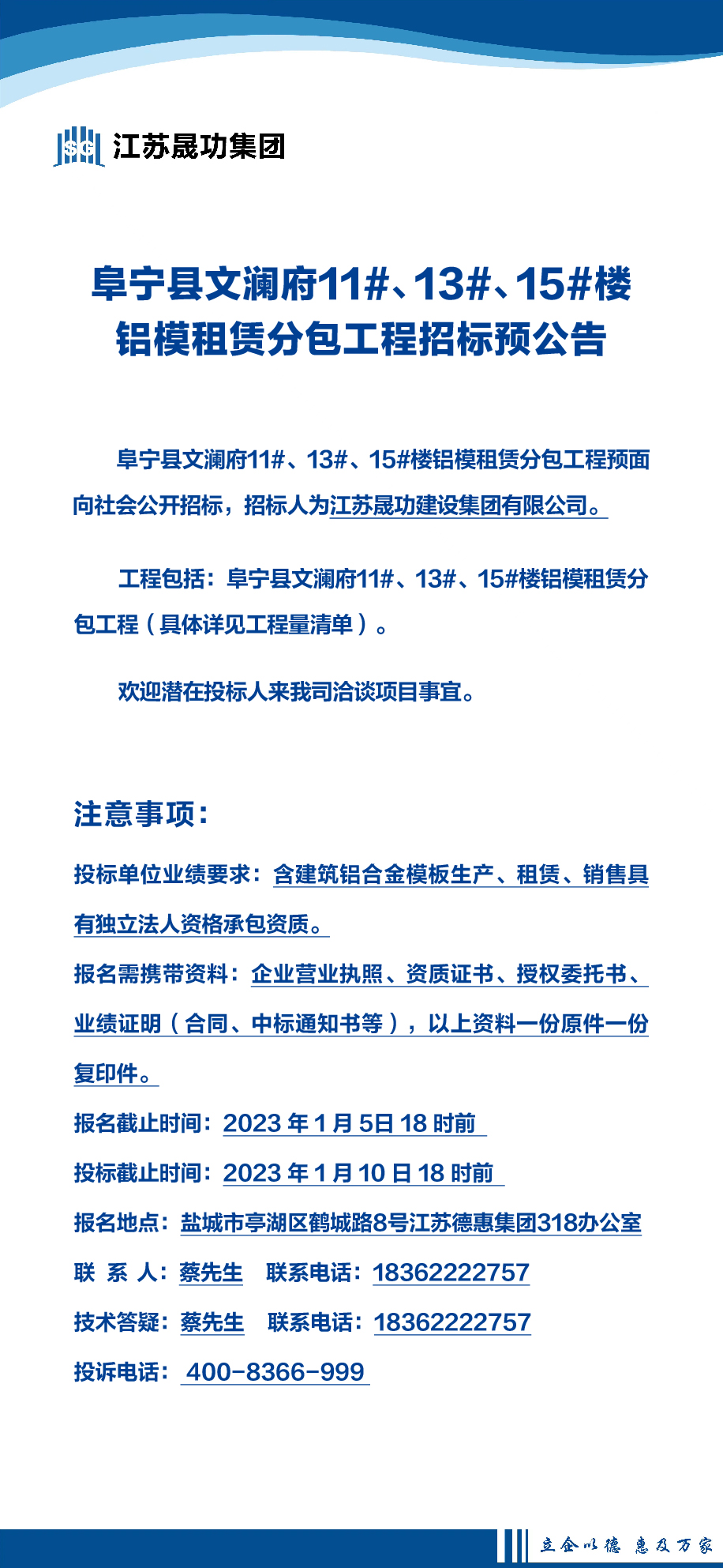 阜寧縣文瀾府11#、13#、15#樓鋁模租賃分包工程