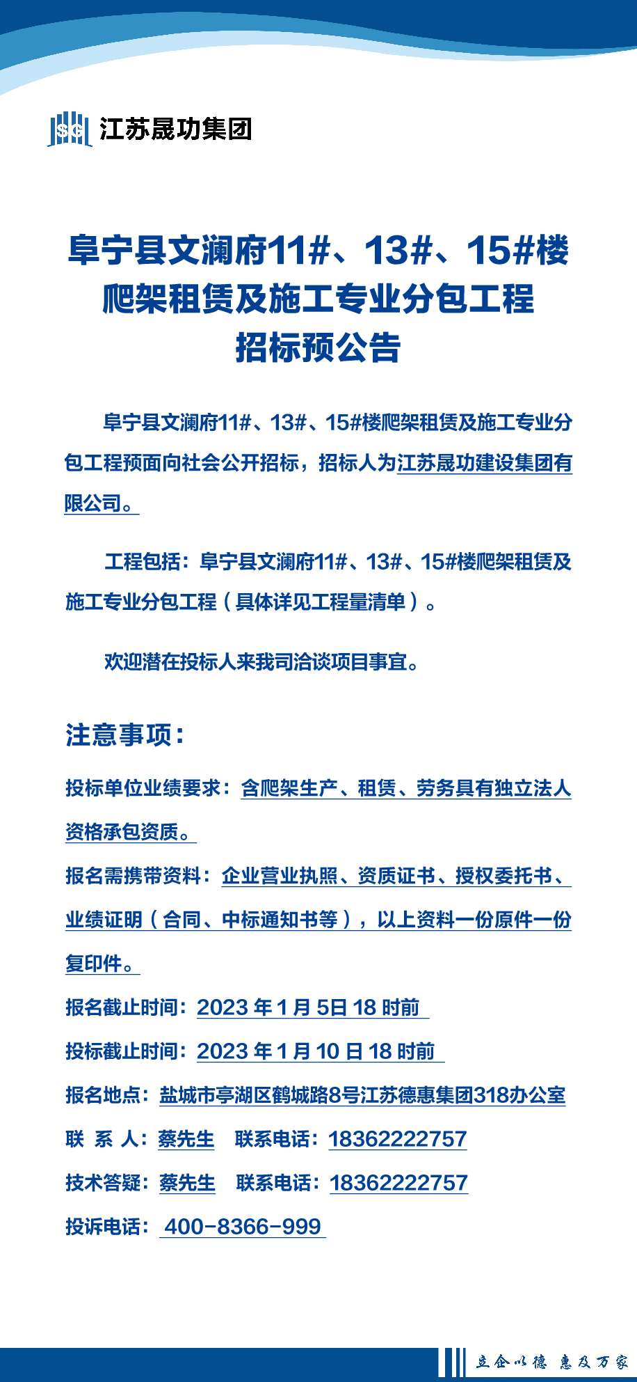 阜寧縣文瀾府11#、13#、15#樓爬架租賃及施工專業(yè)分包工程