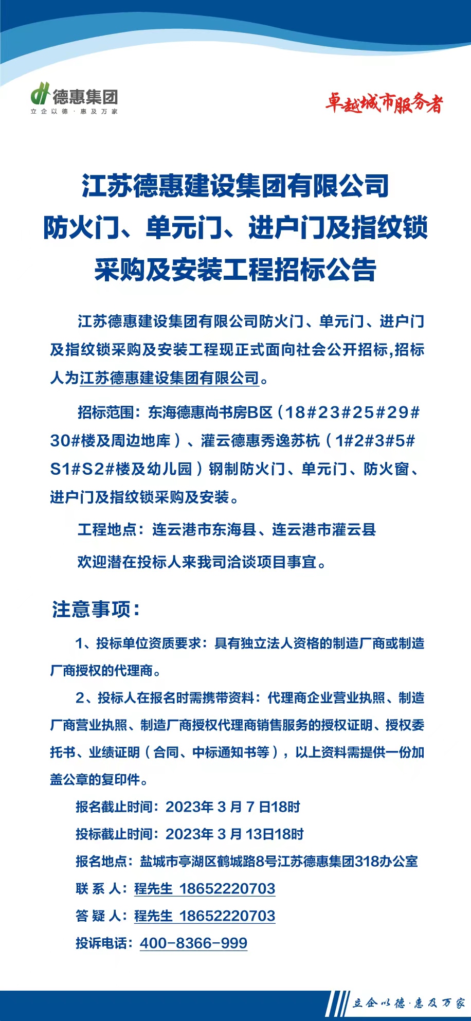 江蘇德惠建設(shè)集團(tuán)有限公司防火門、單元門、進(jìn)戶門及指紋鎖采購(gòu)及安裝工程