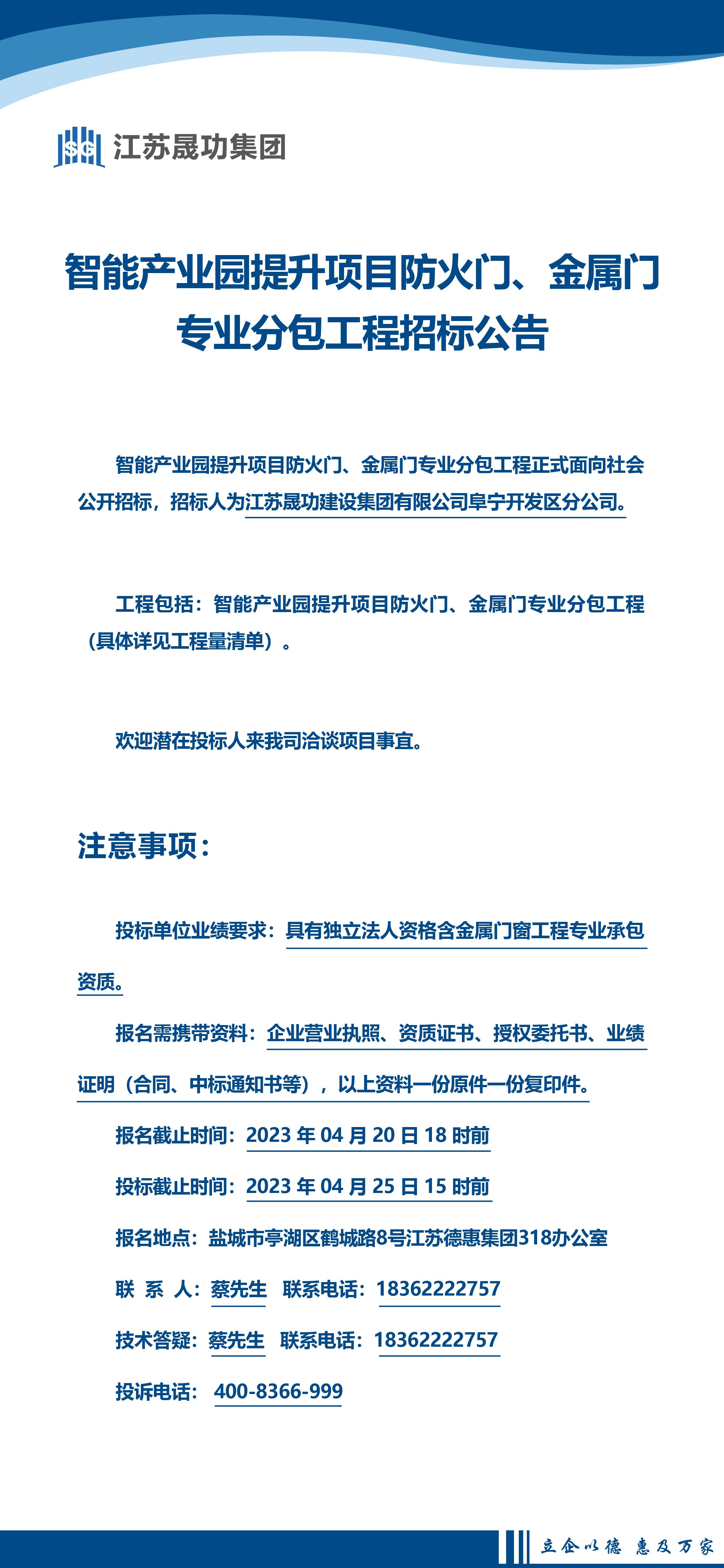 智能裝備產(chǎn)業(yè)園提升項(xiàng)目防火門、金屬門專業(yè)分包工程