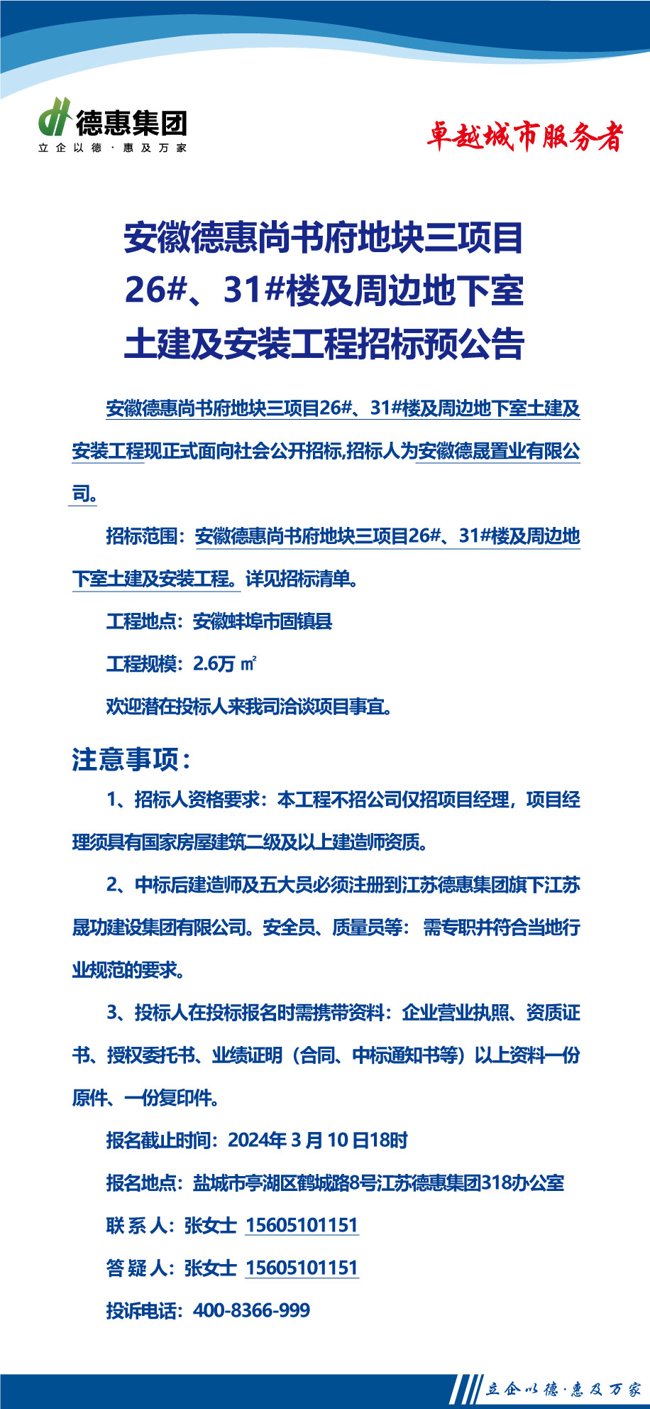 安徽固鎮(zhèn)德惠尚書府地塊三項(xiàng)目26#、31樓及周邊地庫總承包工程