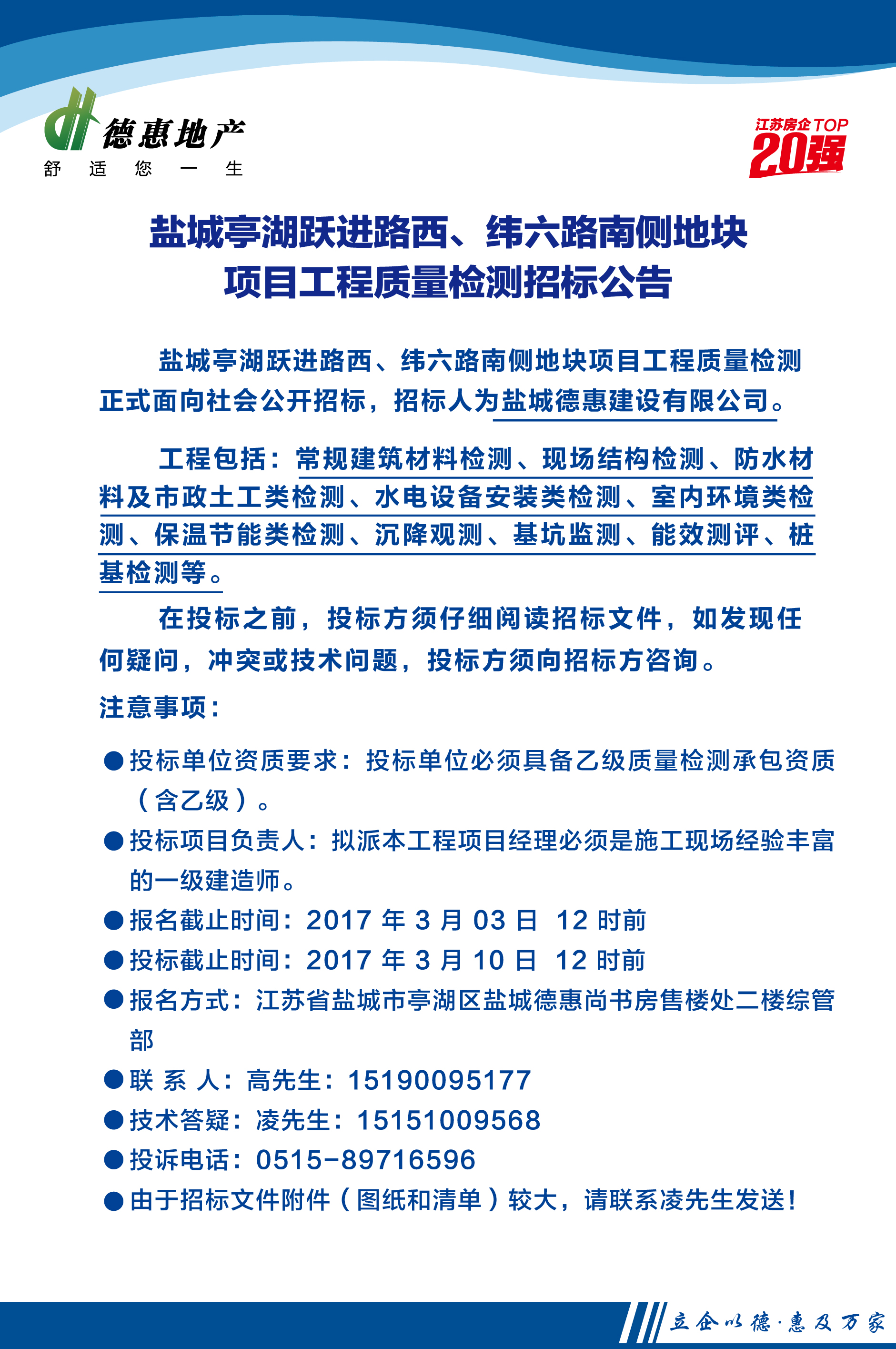 鹽城德惠尚書房西區(qū)電梯隔音墻工程招標公告