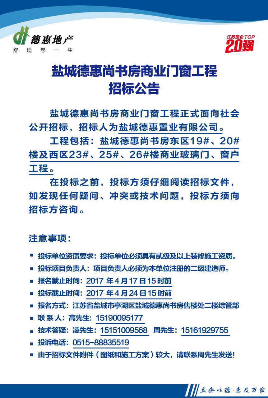 鹽城德惠尚書房商業(yè)門窗工程招標(biāo)公告