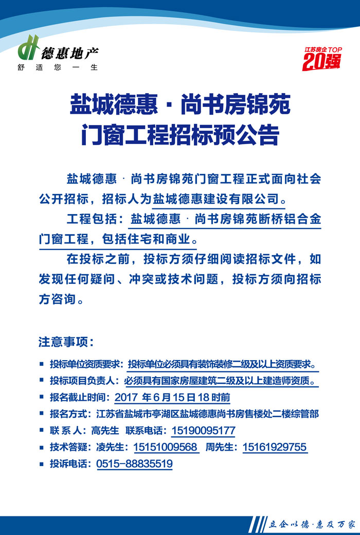 鹽城德惠•尚書房錦苑門窗工程招標(biāo)預(yù)公告