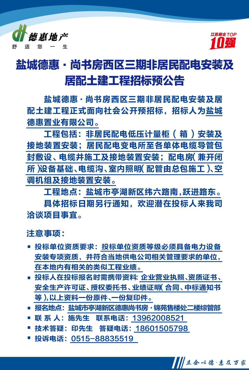 鹽城德惠·尚書房西區(qū)三期非居民配電安裝及居配土建工程招標預公告