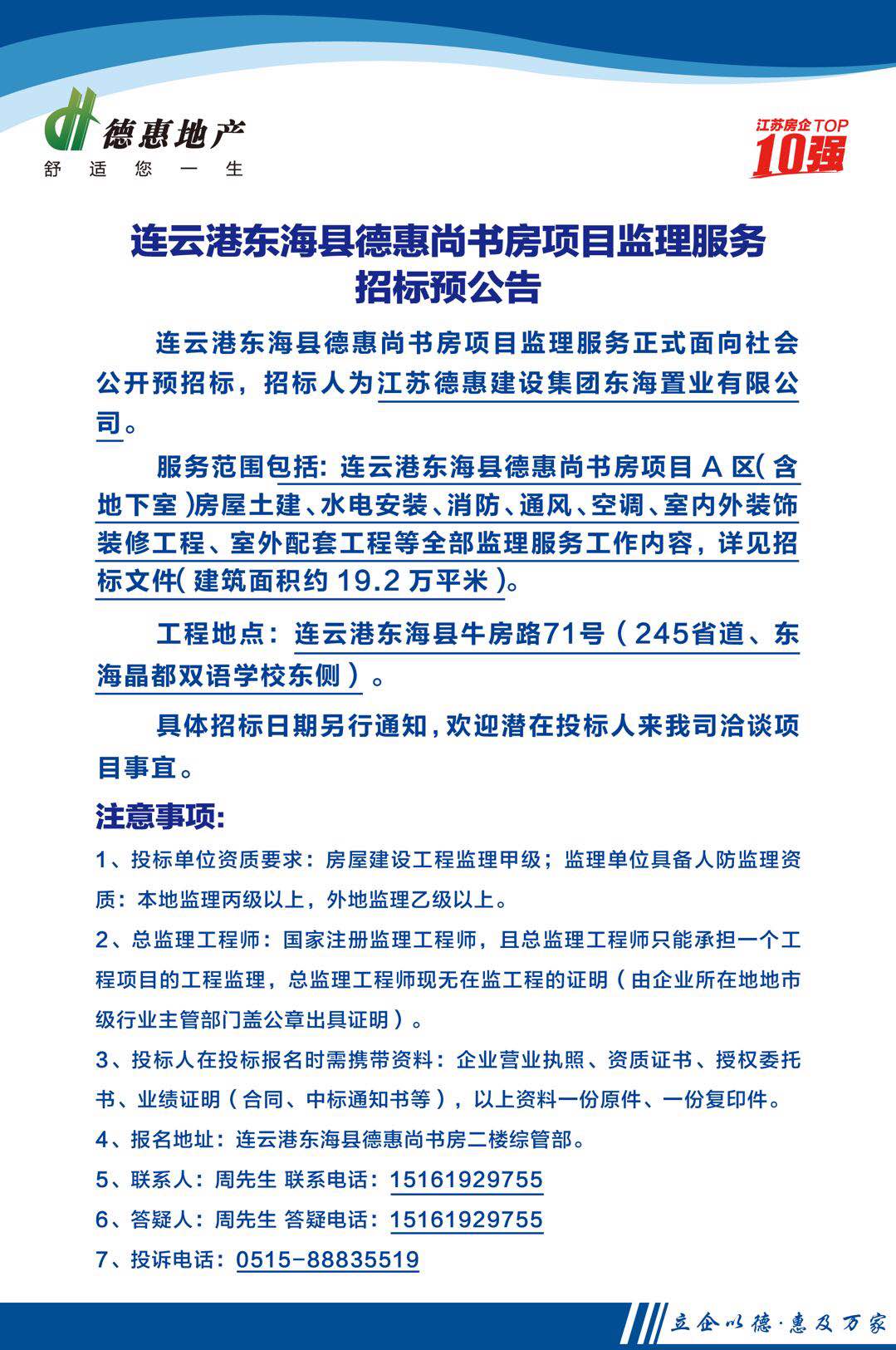 連云港東海縣德惠尚書房項目監(jiān)理服務(wù)招標(biāo)預(yù)公告
