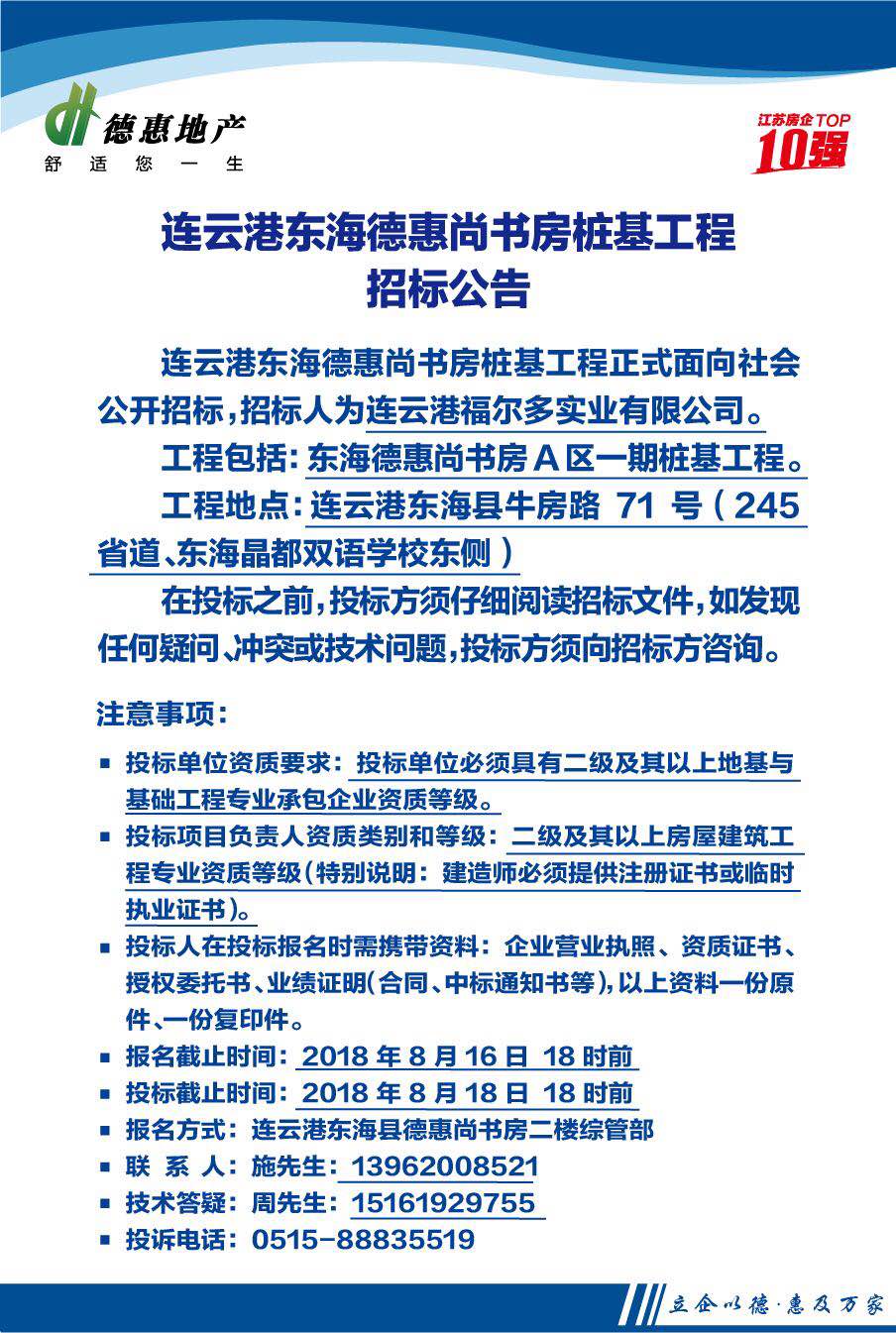 連云港東海德惠尚書房樁基工程招標公告