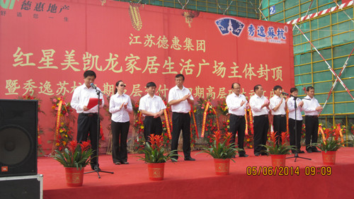 2014年6月5日,江蘇德惠集團 紅星美凱龍家居生活廣場主體封頂暨秀逸蘇杭二期多層交付、四期高層破土動工慶典圓滿落幕 |