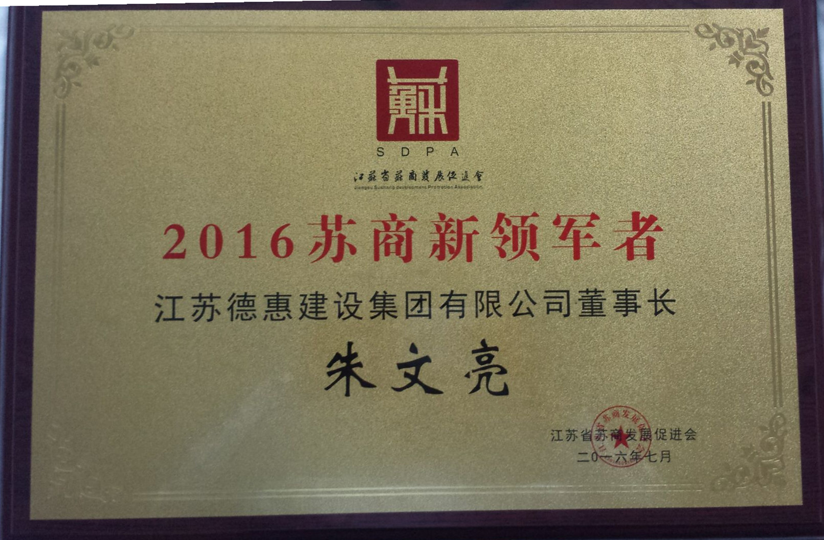 熱烈祝賀朱文亮董事長榮獲“2016蘇商新領軍者”稱號!