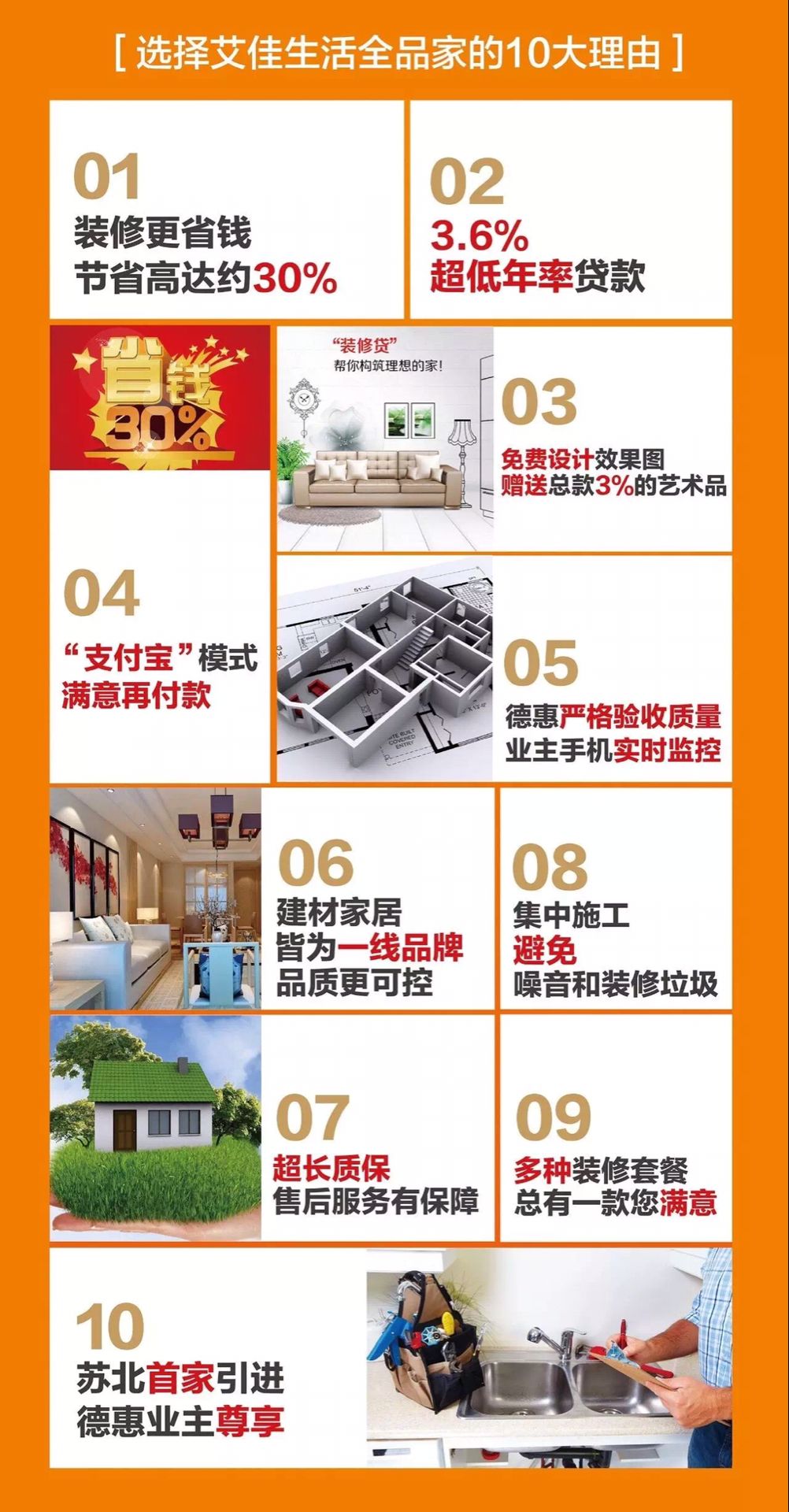 為了解決業(yè)主裝修過程中的“煩、痛、累”,有效降低裝修費用,江蘇德惠集團特將“艾佳生活”首家引入蘇北,助力“城市服務(wù)商”戰(zhàn)略再升級,為業(yè)主帶來“省錢、省力、省心”的全新裝修和生活方式! 艾佳生活采用“定制化+個性化”家裝模式,與全國數(shù)十家一線知名房企戰(zhàn)略合作,直接向品牌家具建材廠商規(guī)?;少?,交由品牌家裝公司流水化施工,大大降低裝修成本。讓業(yè)主在裝修省錢達30%的基礎(chǔ)上,實現(xiàn)“拎包入住”的夢想。