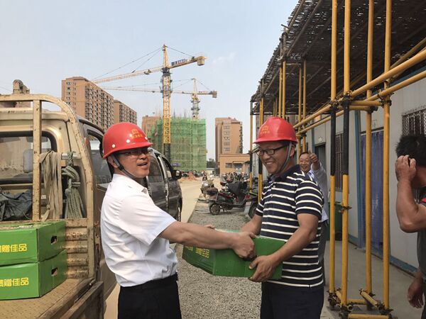 炎炎夏日,驕陽似火也擋不住晟功集團領(lǐng)導(dǎo)心系建設(shè)一線員工的匆匆腳步。2017年5月31日下午,為做好夏季安全生產(chǎn)工作,確保一線員工安全度夏,江蘇晟功建設(shè)集團開展了“夏日送清涼”活動。一輛輛載著香甜可口大西瓜的卡車駛進了江蘇晟功建設(shè)集團的各項目部工地,給員工們送來了“清涼”,也帶來了集團領(lǐng)導(dǎo)們的熱切關(guān)懷。