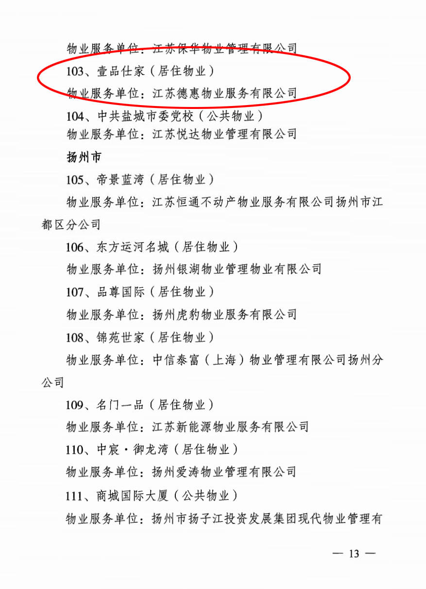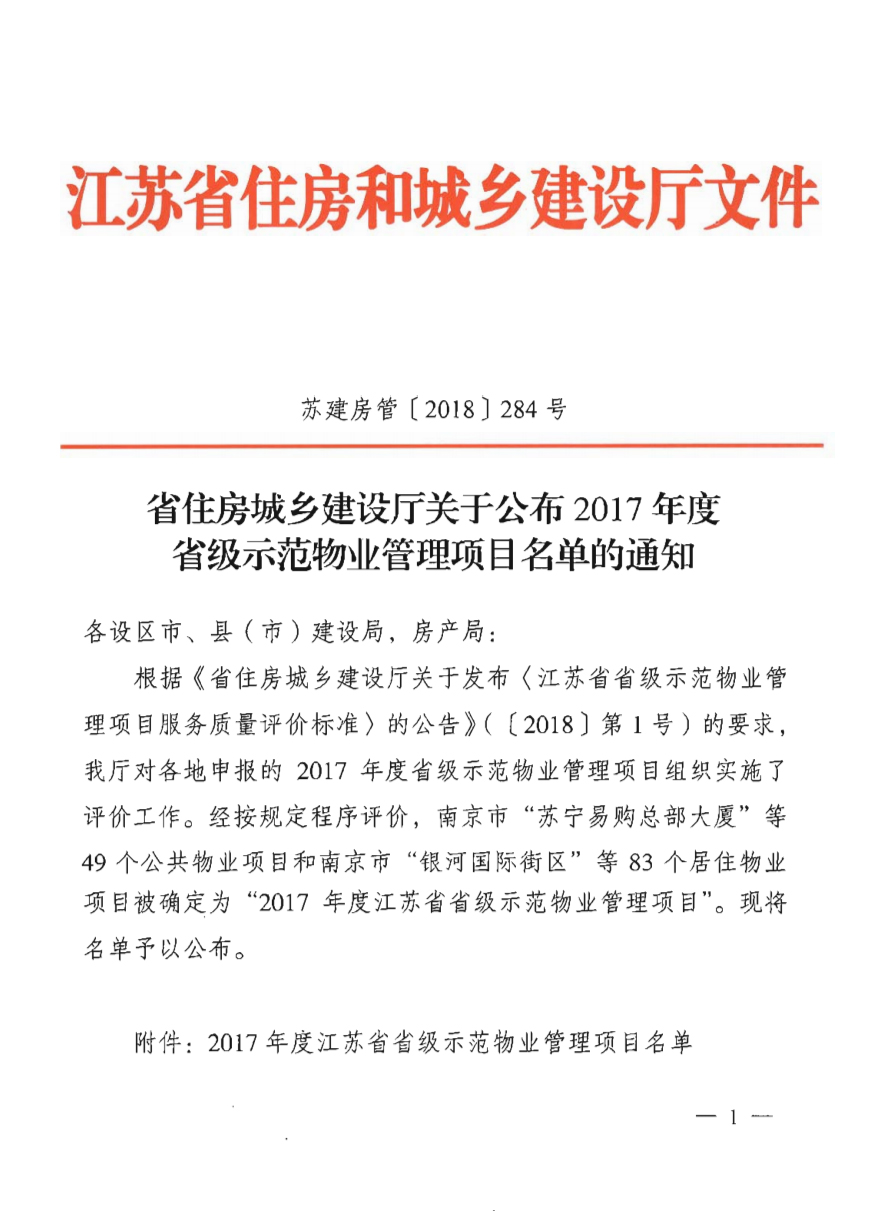 近日, 江蘇省住房和城鄉(xiāng)建設(shè)廳發(fā)布284號文公布了2017年度江蘇省省級示范物業(yè)管理項目名單,鹽城市阜寧縣德惠·壹品仕家榜上有名。多年來,江蘇德惠物業(yè)服務(wù)有限公司一直秉承“讓生活更舒適”的服務(wù)宗旨,從每一個細(xì)微處出發(fā),為客戶打造舒適的品質(zhì)生活。獲此殊榮,寓意著德惠物業(yè)將朝著更高的臺階邁進! 壹品仕家小區(qū)被評為“2017度省級示范物業(yè)管理項目”