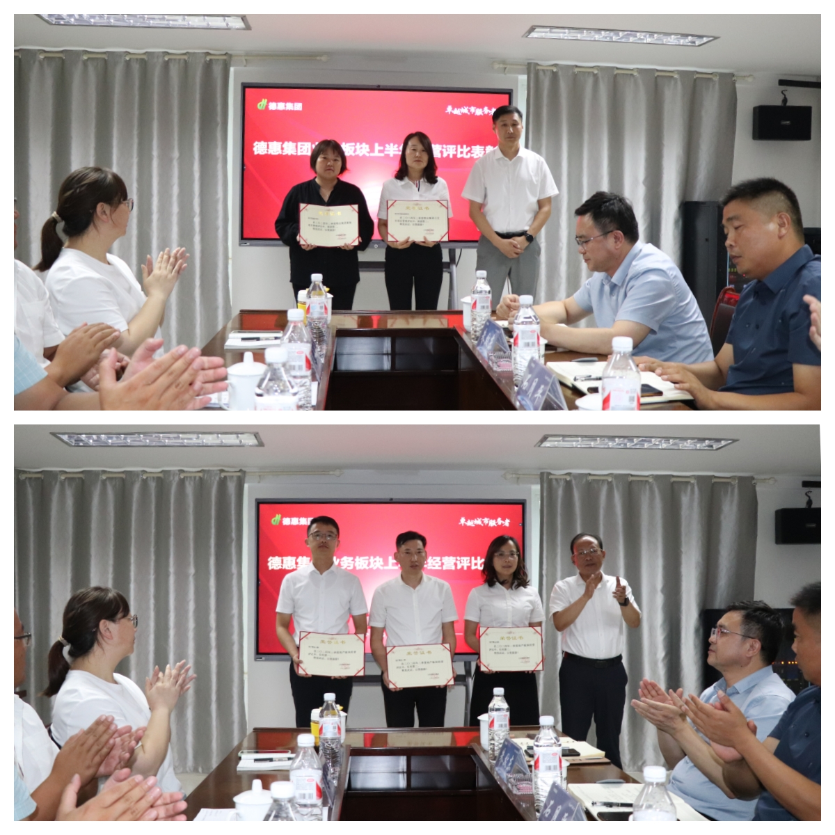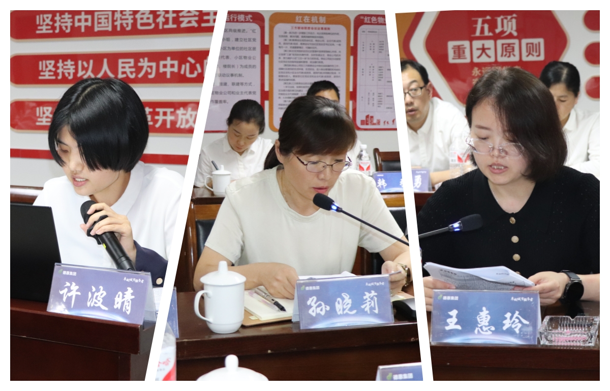 隨后會議對半年度內地產、物業(yè)板塊評比中的優(yōu)秀項目進行現場表彰(物業(yè)集團案場項目管理評比:一季度第一灌云秀逸蘇杭項目、第二成武尚書房項目;二季度第一灌云秀逸蘇杭項目、第二阜寧悅瓏府項目;物業(yè)集團已交付項目管理評比:一季度第一連云港德惠尚書房項目、第二阜寧尚書府項目;二季度第一連云港商務大廈項目、第二阜寧尚書府東苑;地產集團季度經營評比:一季度綜合評比第一事業(yè)二部、綜合評比第二事業(yè)三部;二季度綜合評比第一事業(yè)二部、綜合評比第二事業(yè)一部),會議強調各項目要向榜樣看齊,向標桿學習。